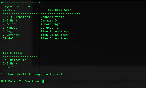 This was my first big project. Its a text based RPG as I am a big fan of the RPG genre.